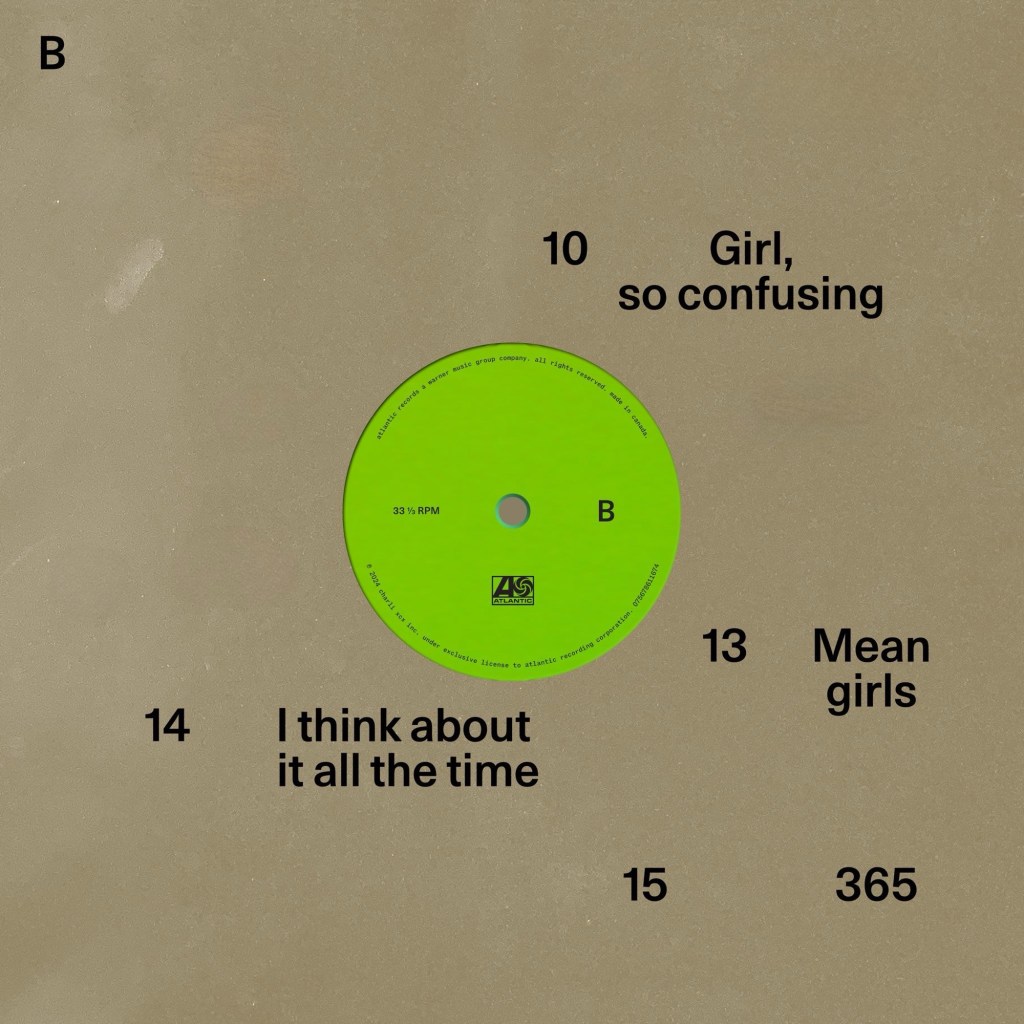 In a succinct 41 minutes, the album manages to seamlessly combine all previous stages of Charli’s career while still propelling listeners into a new stage of her music and the larger landscape of what it means to be a “pop” artist in 2024. I consider this project a truly “post-pop” endeavor, a type of sound that would easily be considered popular by today’s standards but not by traditional pop conventions or metrics.